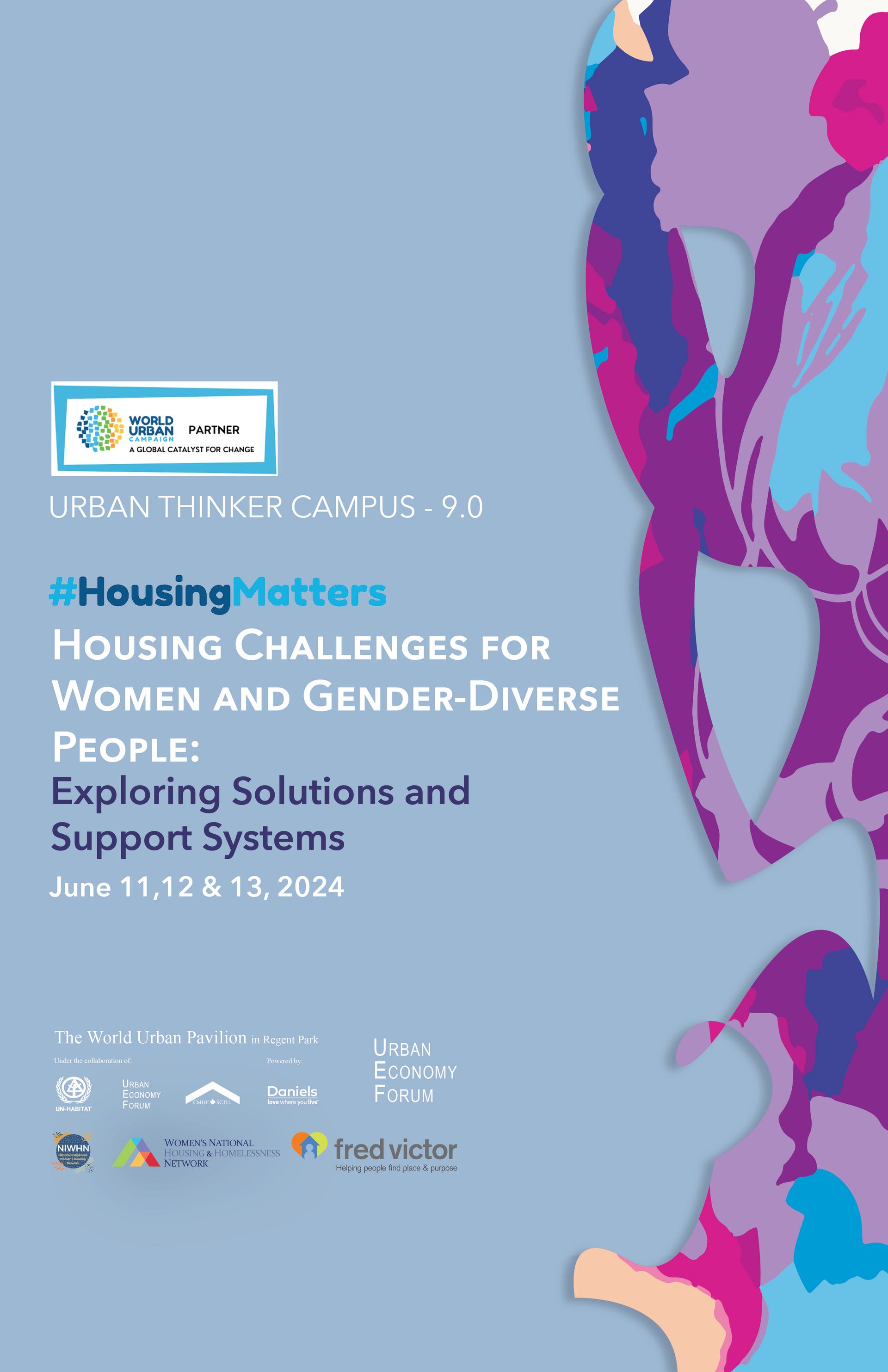 The Urban Economy Forum (UEF) and the World Urban Pavilion (WUP) together with the Women’s National Housing and Homelessness Network (WNHHN), and the National Indigenous Women’s Housing Network (NIWHN), are hosting a three-half day events on June 11, 12, and 13 2024, entitled "Housing Challenges for Women and Gender-Diverse People: Exploring Solutions and Support Systems" to raise awareness on housing issues faced by women and gender-diverse people, including homelessness, and engage in meaningful conversations to explore innovative solutions to amend the situation. It is vital to engage women and gender-diverse people in these discussions considering their unique perspectives, needs, and experiences.
